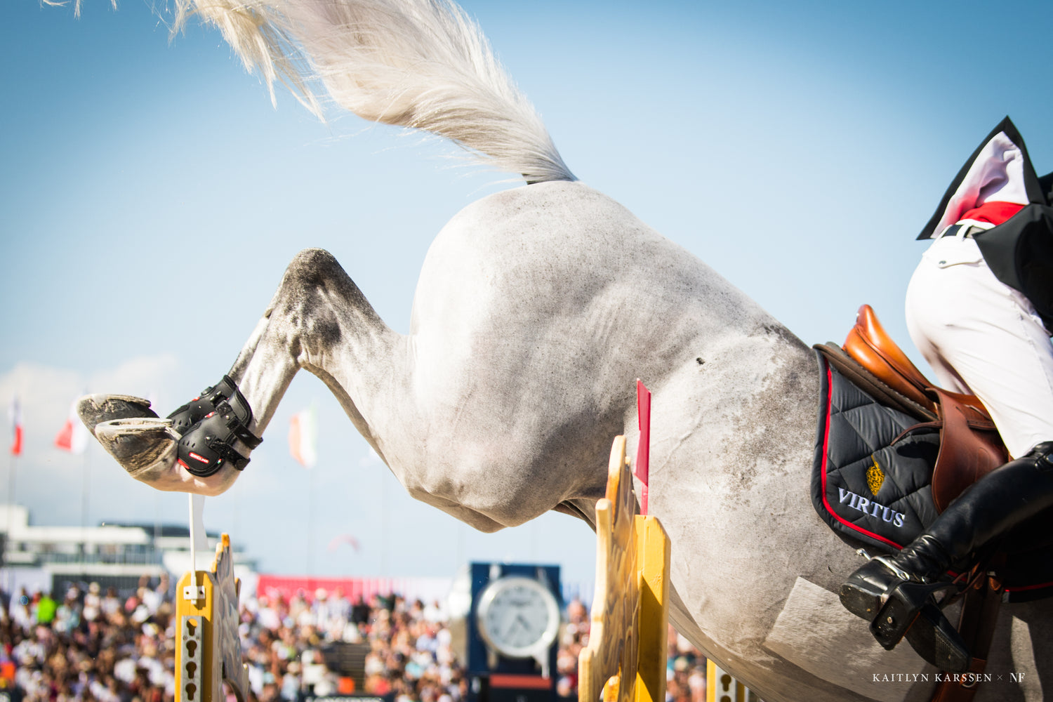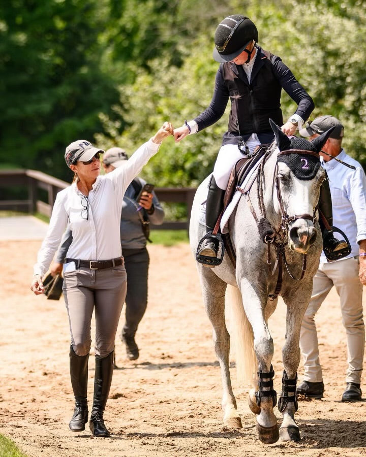 "I brought my former reiner, now jumper, to his first hunter jumper show at Evergreen Horse Park—surrounded by a racetrack and an airport—and he handled it like a pro. Despite the noise and chaos, he stayed calm, focused, and responsive, and it was incredible to see his confidence grow after months of groundwork."