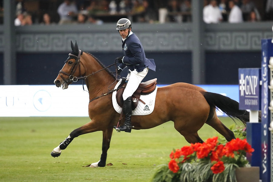Eric Lamaze and Fine Lady 5 of Canada proved the pair to beat in the €93,465 Massimo Dutti Trophy CS15* 1.50/1.55m class at the Longines Global Champions Tour Mexico Cit. after their lightening quick jump off round left the rest of the star-studded field trailing in their wake.