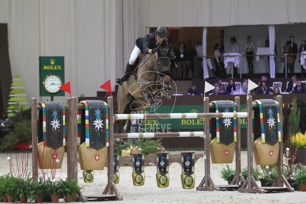 The Netherlands’ Harrie Smolders and the 13-year-old KWPN gelding Zinius (Nabab de Reve x Kannan) took home top honors in the 1.55m Credit Suisse Geneva Classic on Thursday, December 7, 2017, kicking off CHI Geneva CSI5* in winning form.